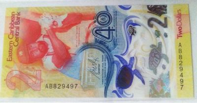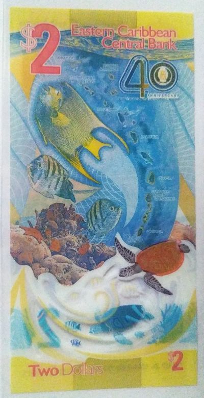 Восточные Карибы 2 доллара 2023 40 лет Центробанку ПРЕСС пластик